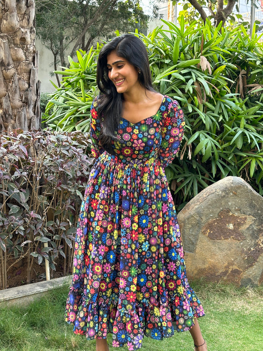 Embroidered Hand Block Printed Floral Lehenga Set In Silk