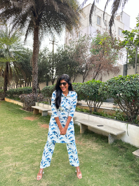 Baby Pink Rayon Printed Kurta With Puff Sleeves and Palazzo Pants